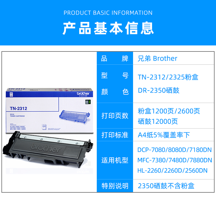 原裝兄弟 22600 噴墨盒 7080/7180/7380/7480/7880DN/2260/2560DN硒鼓粉盒墨盒粉倉 兄弟原裝TN-2325大容量墨粉盒2600頁